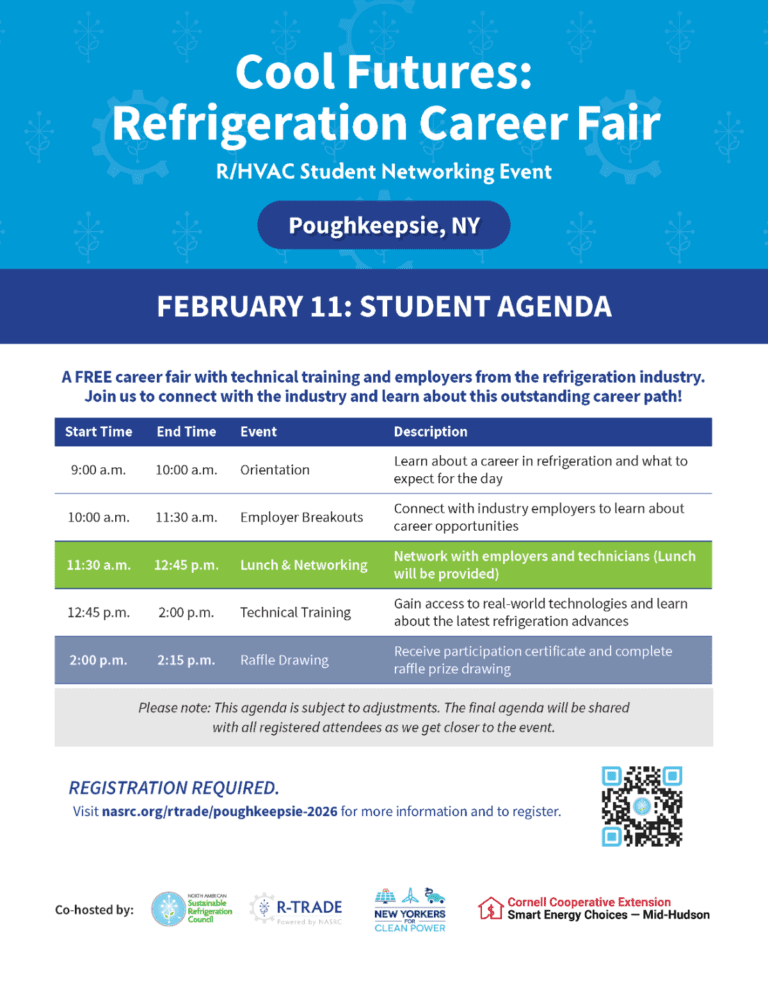 R/HVAC students and faculty are invited to participate in a FREE career fair with employers from the refrigeration industry. Join us to connect with the industry and learn about this outstanding career path! Participants will learn about career opportunities, connect with leading industry employers, and gain exposure to the latest refrigeration technologies.